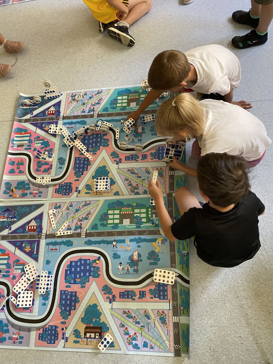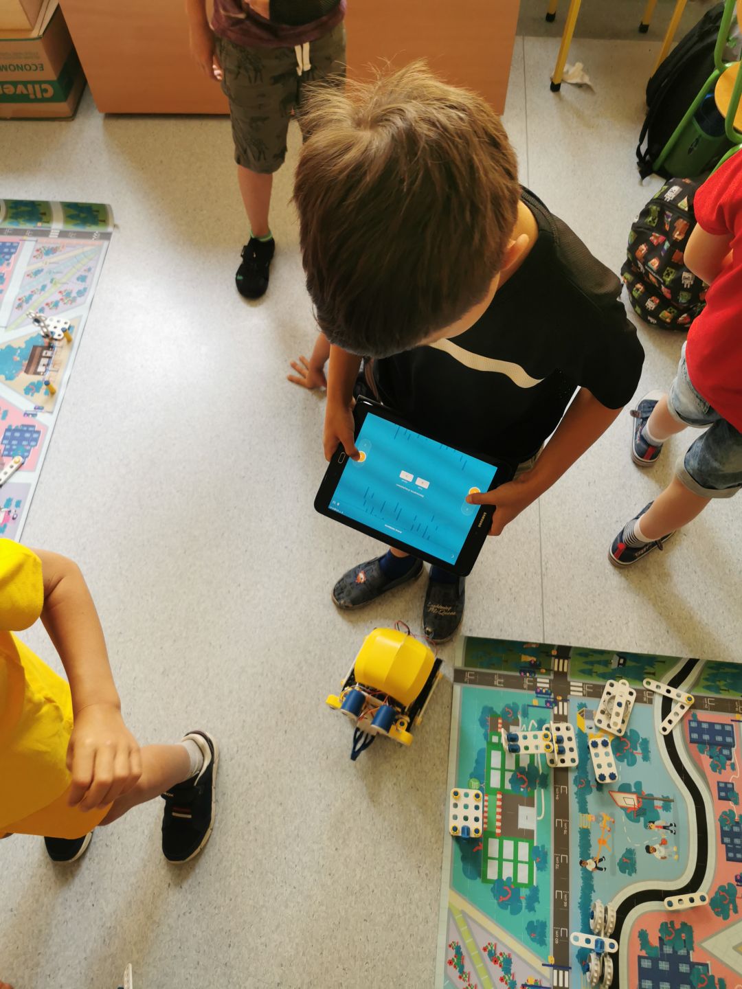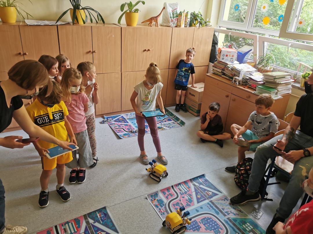 Dzisiaj klasa 1c uczestniczyła w warsztatach – Poszukiwacze algorytmów miejskich. Podczas tych zajęć uczestnicy poznali wstępne informacje na temat algorytmów oraz zapoznali się z elementami zestawu SkriKit+, Skribotami. Odkrywali algorytmy spotykane w mieście. Dzięki konstrukcjom, algorytmom i projektom, które dzieci wykonały w trakcie spotkania, Skrimiasto stało się najbardziej ekologicznym i najbardziej przyjaznym mieszkańcom miastem. Wszyscy doskonale się bawili i uczyli w trakcie warsztatów.